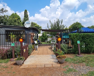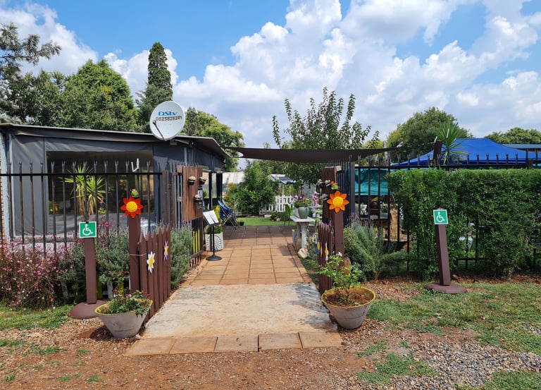 Relax in a peaceful garden setting with family-friendly dining.